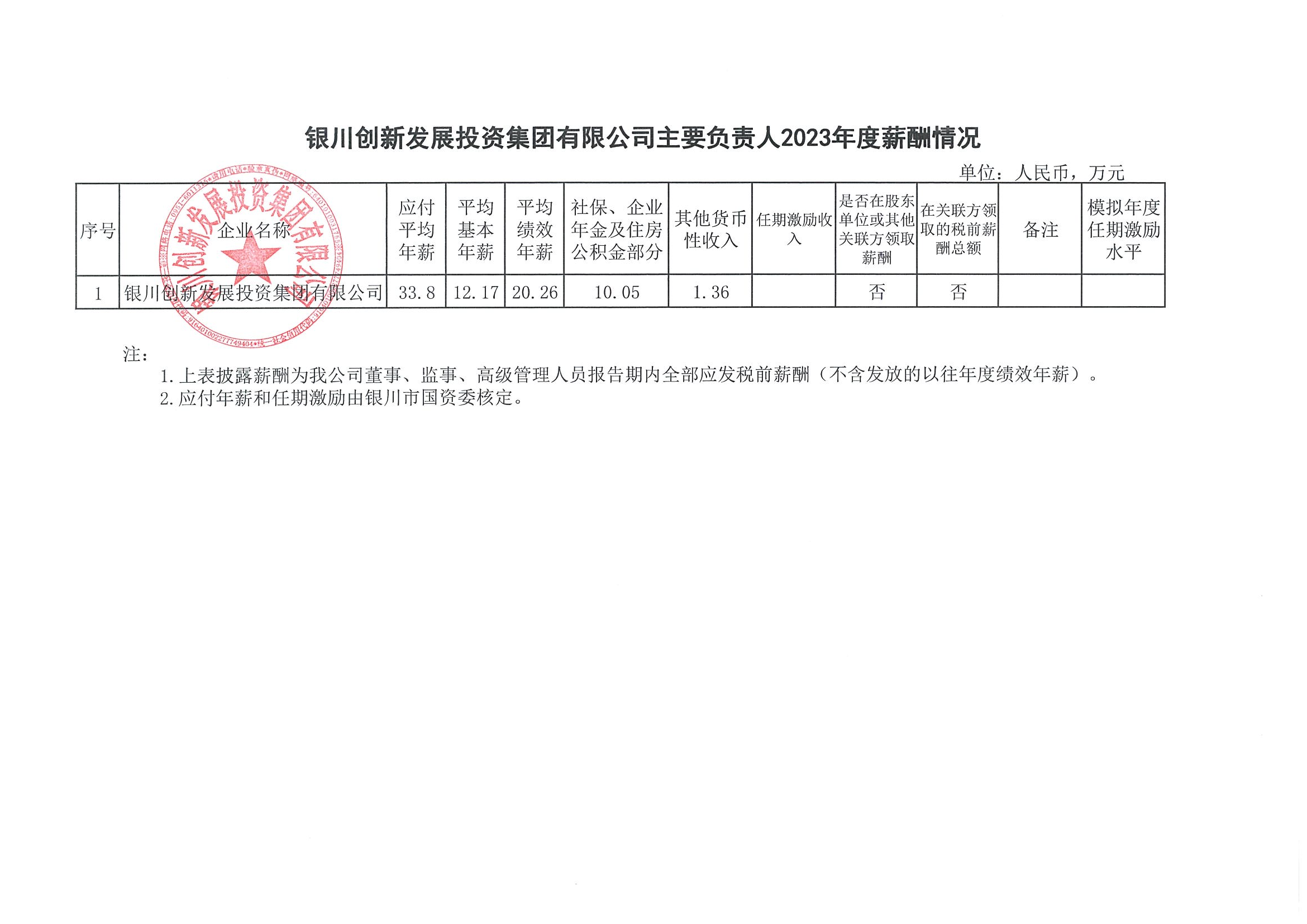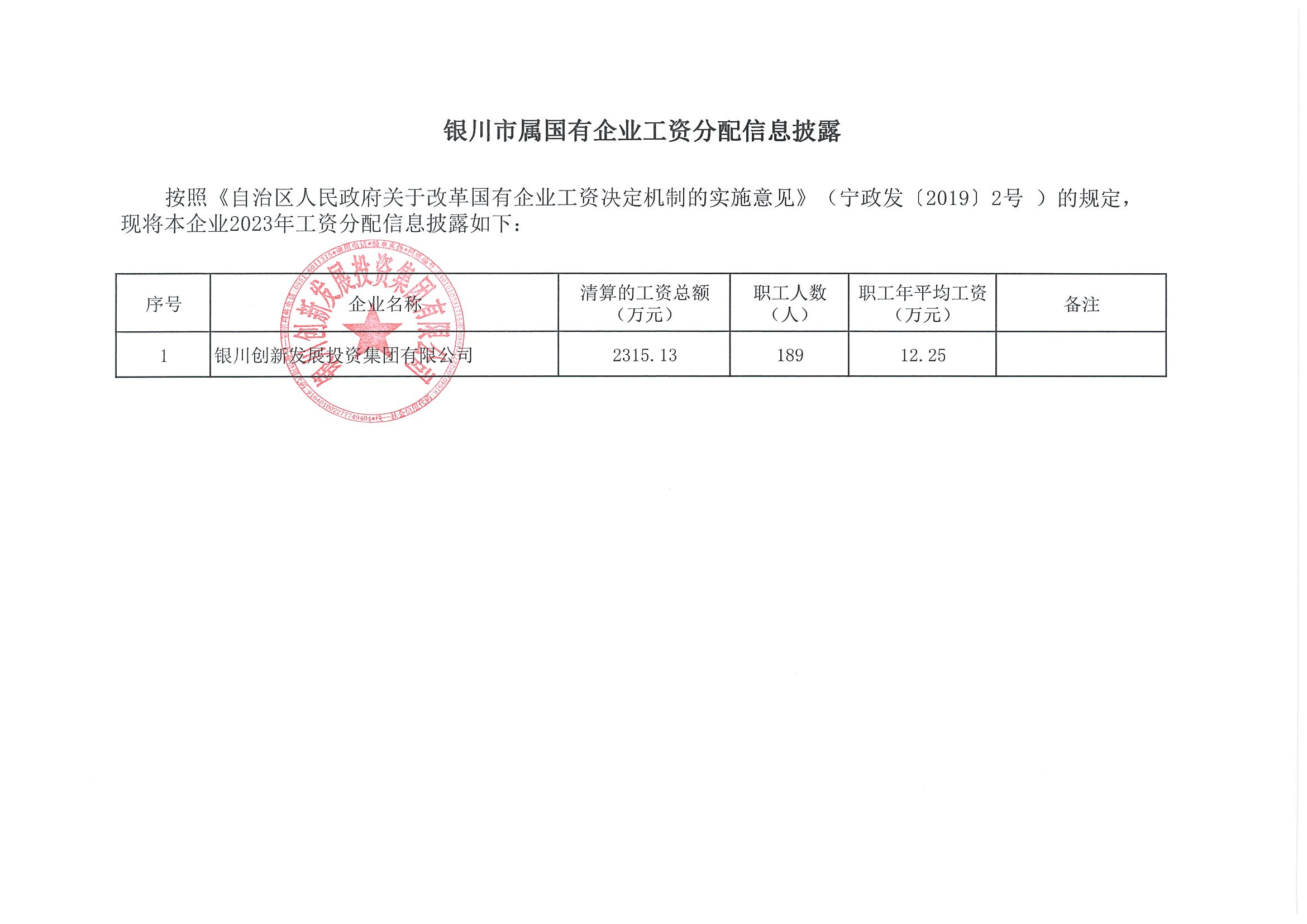銀川創(chuàng)新發(fā)展投資集團有限公司2023年薪酬分配情況公示
